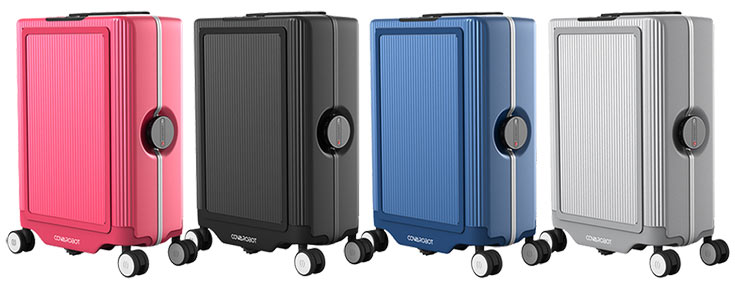 Чемодан оборудован умным замком, сигнализацией, срабатывающей при удалении от пользователя, и приемником GPS, позволяющим отыскать забытый или утерянный багаж. Стоит отметить наличие отделения для электронных устройств со встроенным зарядным устройством. Для управления умными замками, записи маршрута и выполнения других функций служит мобильное приложение.
