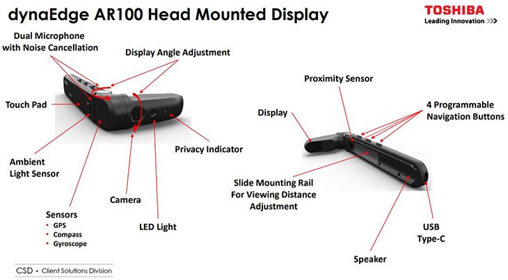 Toshiba dynaEdge AR100 Smart Glasses представляет собой комплект из носимого компьютера и умных очков