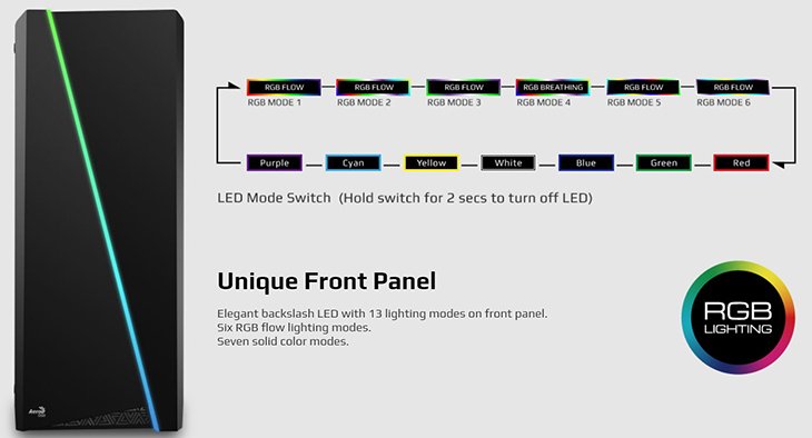 Светодиодная полоса по диагонали пересекает переднюю панель корпуса Aerocool Cylon
