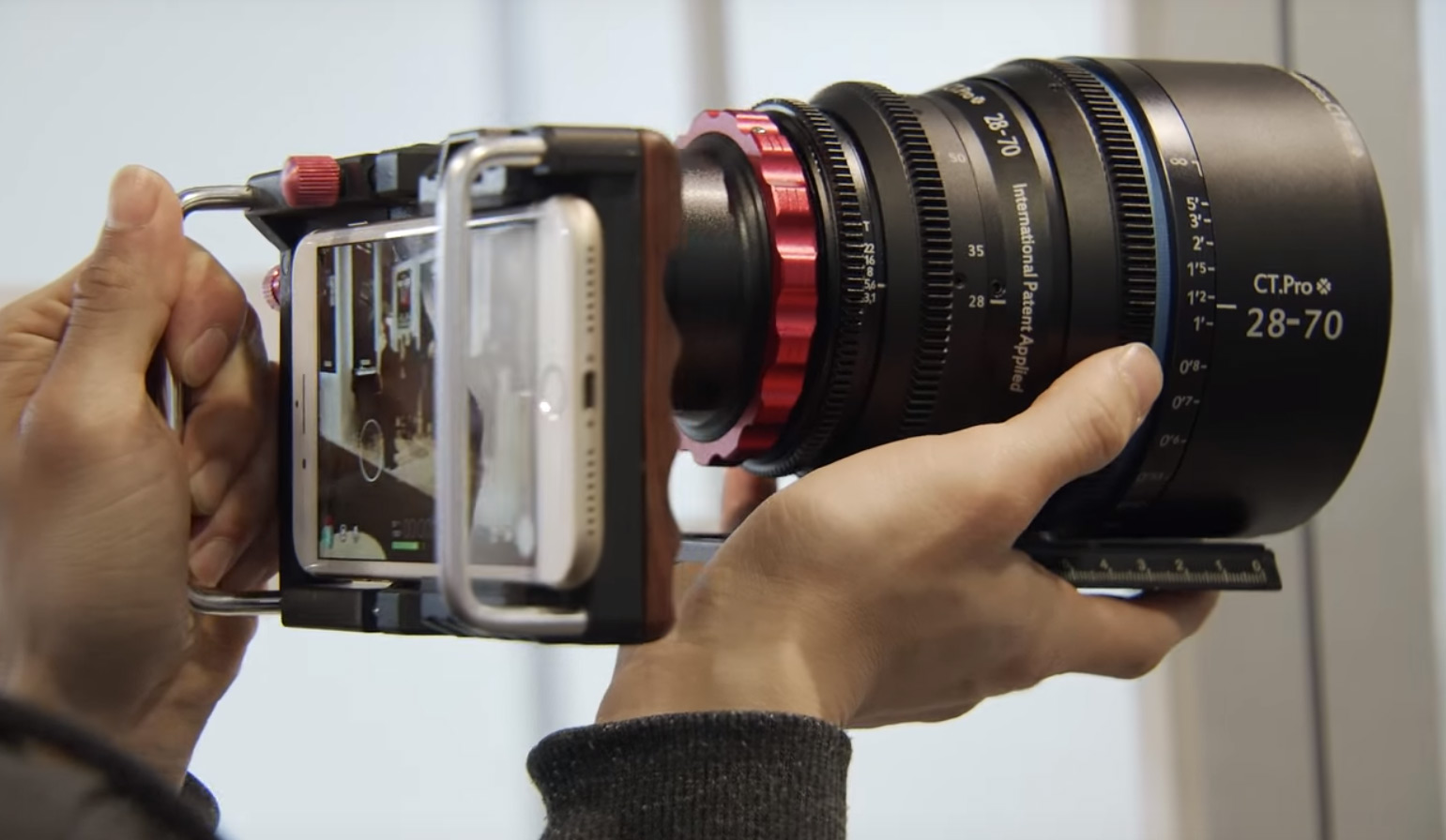 Небольшая китайская компания Cinematics International показала на выставке NAB 2018 необычную разработку. Это адаптер, позволяющий использовать полнокадровые объективы для видеосъемки совместно со смартфоном, работающим под управлением iOS или Android.