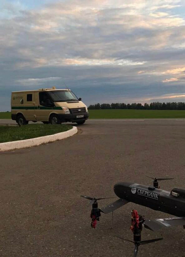 Летом прошлого года уже были проведены испытания дрона для Сбербанка. Тогда аппарат доставил наличные на расстояние около 10 километров — от кассового центра до машины инкассаторов, двигаясь со скоростью до 180 км/ч.