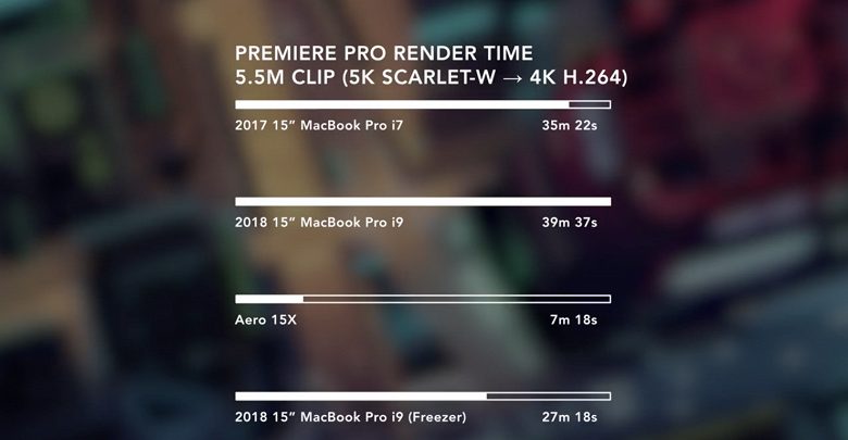 Из-за этого в некоторых реальных тестах такая модификация ноутбука оказывается медленнее, чем та, которая использует CPU Core i7-8750H. Энтузиаст решил проверить, действительно ли проблема исключительно в перегреве. Он попросту засунул ноутбук в холодильник, после чего результат в тесте Premiere Pro улучшился с 39 минут до 27 минут!