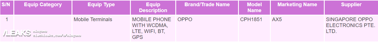 Источник заметил в базе данных органов, сертифицирующих оборудование связи в Сингапуре и на Тайване, сведения о смартфоне Oppo AX5.