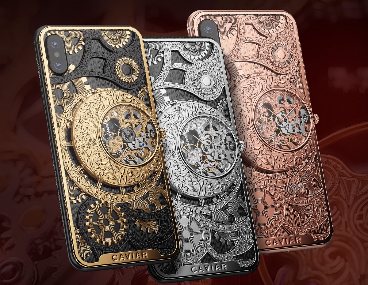 Российская компания Caviar продолжает выпускать люксовые версии смартфонов с необычной отделкой. В новую коллекцию Caviar Grand Complications Skeleton вошли версии iPhone XS и iPhone XS Max, оснащённые настоящими механическими часами-скелетонами.