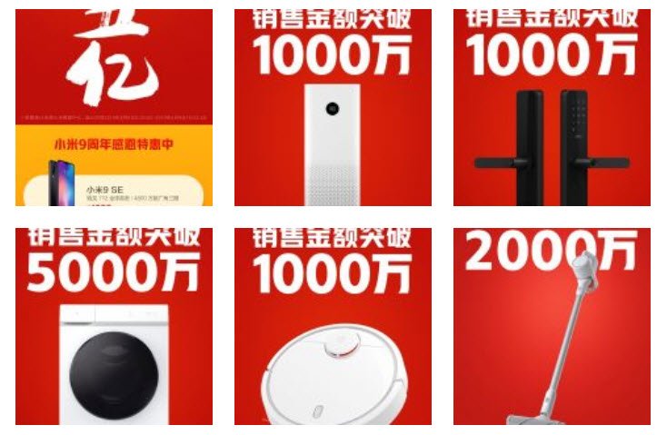 Умный дверной замок Mijia, робот-пылесос и очиститель воздуха продались на сумму более 1,5 млн долларов. Продажи стиральной и сушильной машины Mijia, рассчитанной на 10 кг, превысили 7,5 млн долларов. Кондиционеров Mi Home продано более 20 000 единиц.
