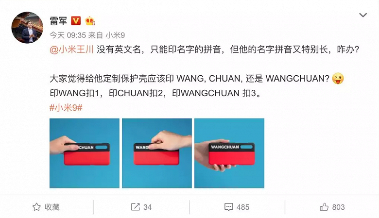 Представители Xiaomi уже показывали, как могут выглядеть нестандартные чехлы для флагмана Mi 9. К примеру, такие демонстрировались и в день анонса Mi 9, а спустя время такой чехол с надписью Roy (в честь посла бренда — певца Роя Ванга (Roy Wang)) стал составной частью комплекта Xiaomi Mi 9 Roy Wang Limited Edition. Завтра компания обещает начать продажи схожих чехлов всем желающим, всего предусмотрено 17 моделей — по восемь с женскими и мужскими именами, и один дополнительный — опять же, в честь Роя.