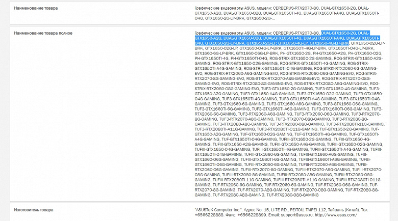 Однако, похоже, что GTX 1650 действительно будет существовать в двух модификациях. На это указывают документы в базе EEC, где перечислены многочисленные модели компании Asus.