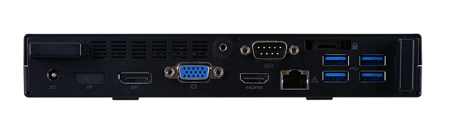 Оснащение системы включает средства беспроводного подключения Wi-Fi 802.11ac и Bluetooth 4.2, три порта USB 3.1 Gen1, один из которых выведен на разъем Type-C, четыре порта USB 2.0, линейный выход и микрофонный вход, порт Gigabit Ethernet, видеовыходы HDMI, DisplayPort и VGA (D-Sub). В виде опции возможно добавление второго разъема DisplayPort и порта RS-232.