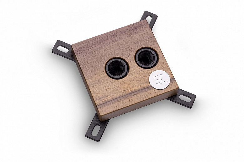 Первое — процессорный водоблок EK-CPU Lignum - Walnut походит для процессоров Intel и AMD новых поколений. Он стоит 180 евро.