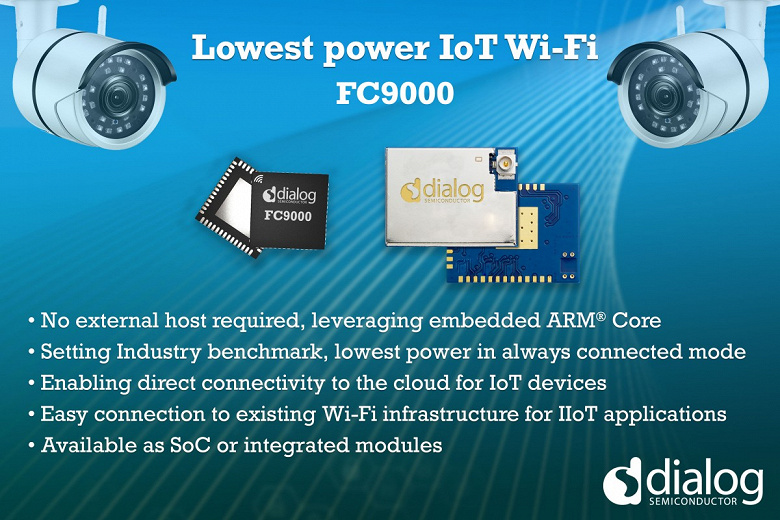 Однокристальная система Dialog Semiconductor FC9000 с поддержкой Wi-Fi и сверхнизким энергопотреблением предназначена для устройств IoT