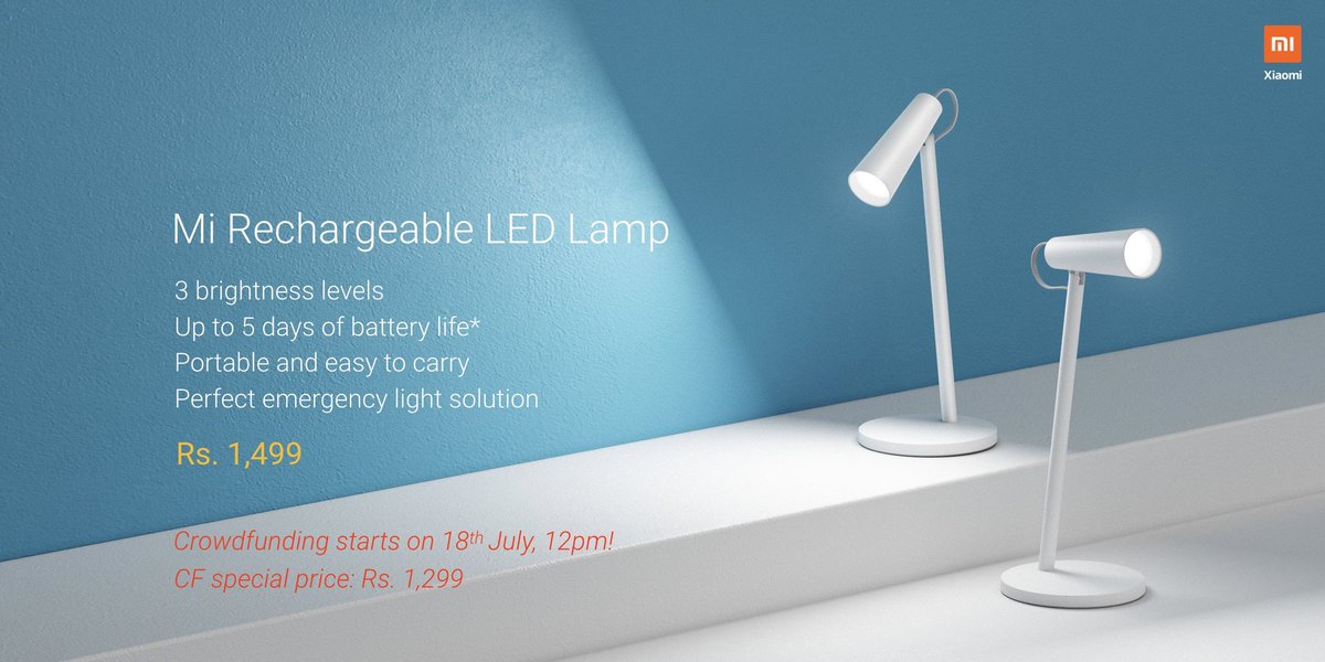 Также была анонсировала портативная светодиодная настольная лампа Xiaomi Mi Rechargeable LED Lamp, средства на которую начнут собирать через платформу коллективного финансирования уже завтра.