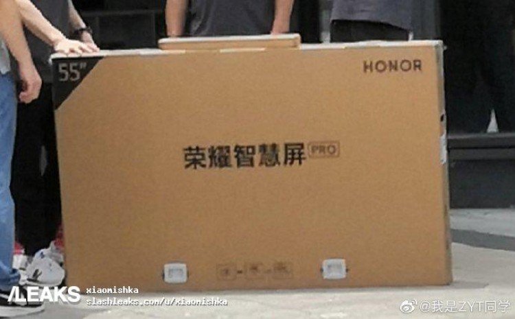 55-дюймовый телевизор Honor Smart Screen Pro, который транспортировался в своей упаковке, впервые попал в кадр папарацци в Китае. Надпись с китайского на английский переводится как Honor Smart Screen. После китайских иероглифов также видно слово Pro.