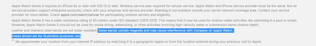 Предупреждение мелким шрифтом. Ремешки с магнитами могут создавать помехи для приложения Compass в часах Apple Watch Series 5
