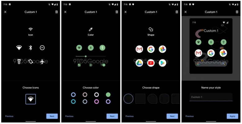 В частности, на данный момент можно говорить о том, что можно будет выбрать один из двух шрифтов, один из восьми цветов для акцентов в системе, один из четырёх дизайнов ярлыков. Вероятно, позже появится выбор стиля иконок панели управления. Также можно надеяться, что к релизу новых смартфонов количество вариантов для каждого пункта увеличится.