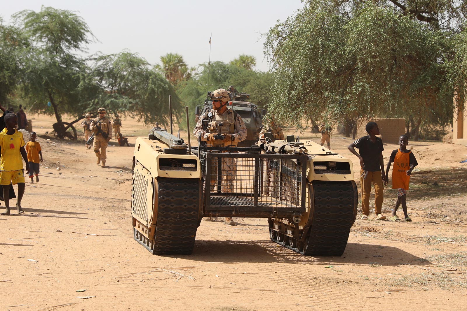 Многоцелевая гусеничная платформа THeMIS может быть оснащена различными боевыми системами. В Мали ее используют как транспортное средство и для наблюдения с помощью штатных камер, которые позволяют осматривать опасные районы, не подвергая солдат риску.