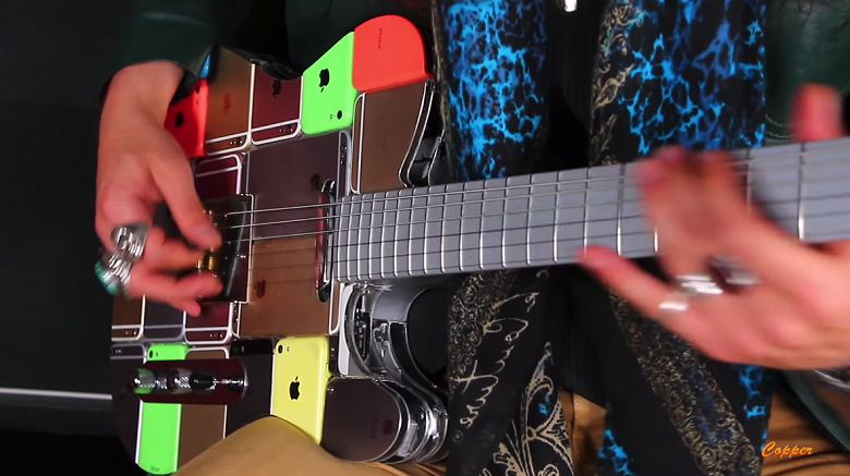 Как рассказывает умелец на своём видеоканале ArtMayer на Youtube, в создании гитары приняли «добровольное» участие 107 iPhone, а также некоторое количество корпусов от них.