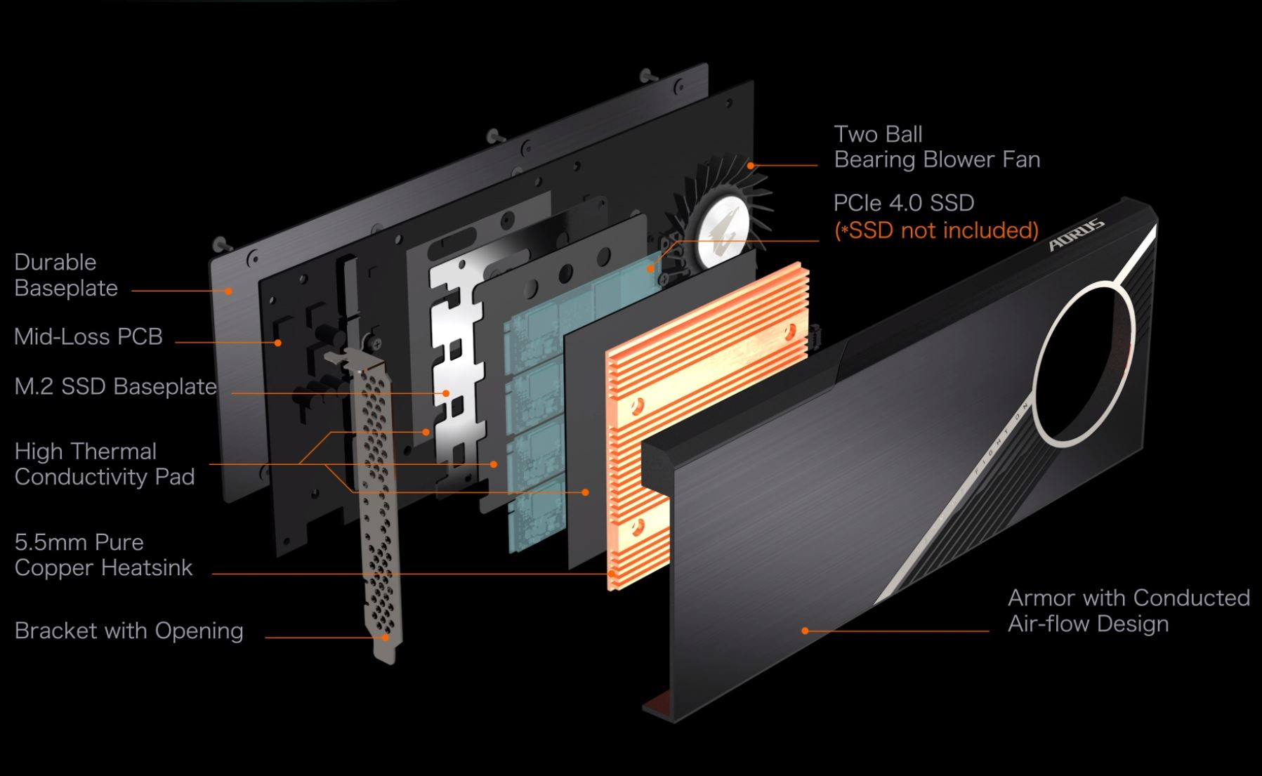 Охлаждение накопителей обеспечивают медный радиатор и 50-миллиметровый вентилятор. Скорость вращения вентилятора определяет контроллер, основываясь на показаниях восьми термодатчиков. Карта облачена в алюминиевый кожух, а ее тыльная поверхность прикрыта алюминиевой панелью. Ожидаемая цена карты — 130 долларов. По данным источника, ею будут комплектоваться некоторые системные платы Gigabyte