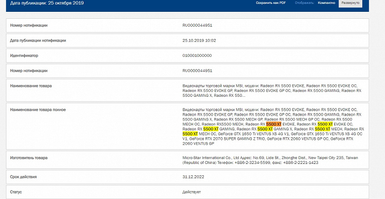 В базе ЕЭК прописались видеокарты компании MSI, среди которых можно найти в том числе несколько моделей RX 5500 XT, включая карты линеек Evoke, Mech и Gaming. А это означает, что такие адаптеры у MSI уже имеются. Вопрос лишь в том, какие параметры будут у RX 5500 XT и когда ожидать её анонса.