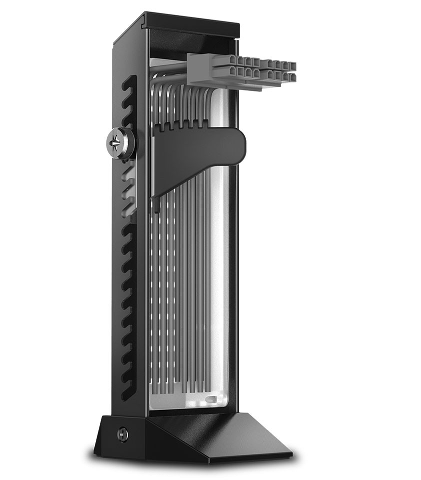 Одновременно стойку можно использовать для аккуратной прокладки кабелей, поскольку в ней есть канал, достаточный для двух кабелей с восьмиконтактными разъемами PCIe.