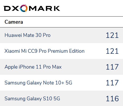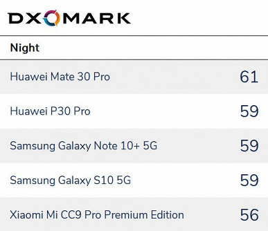 Первое место разделили модели Huawei Mate 30 Pro и Xiaomi Mi CC9 Pro Premium Edition. Составители рейтинга назвали оба смартфона отличным выбором для мобильных фотографов, которым требуется высококлассные результаты по фото и видео.