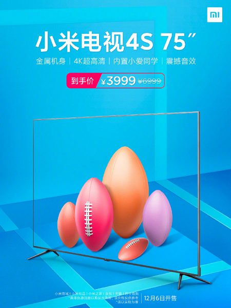 75-дюймовый 4K-телевизор Xiaomi Mi TV 4S подешевел более чем вдвое