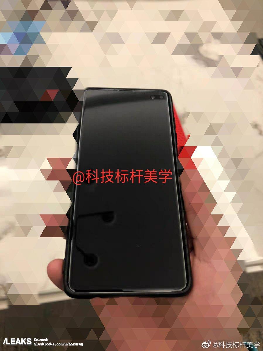 Второе фото подтверждает, что смартфон оснащен врезанной в правый верхний угол экрана фронтальной камерой, которая включает два датчика изображения. Это делает устройство похожим на Samsung Galaxy S10+.
