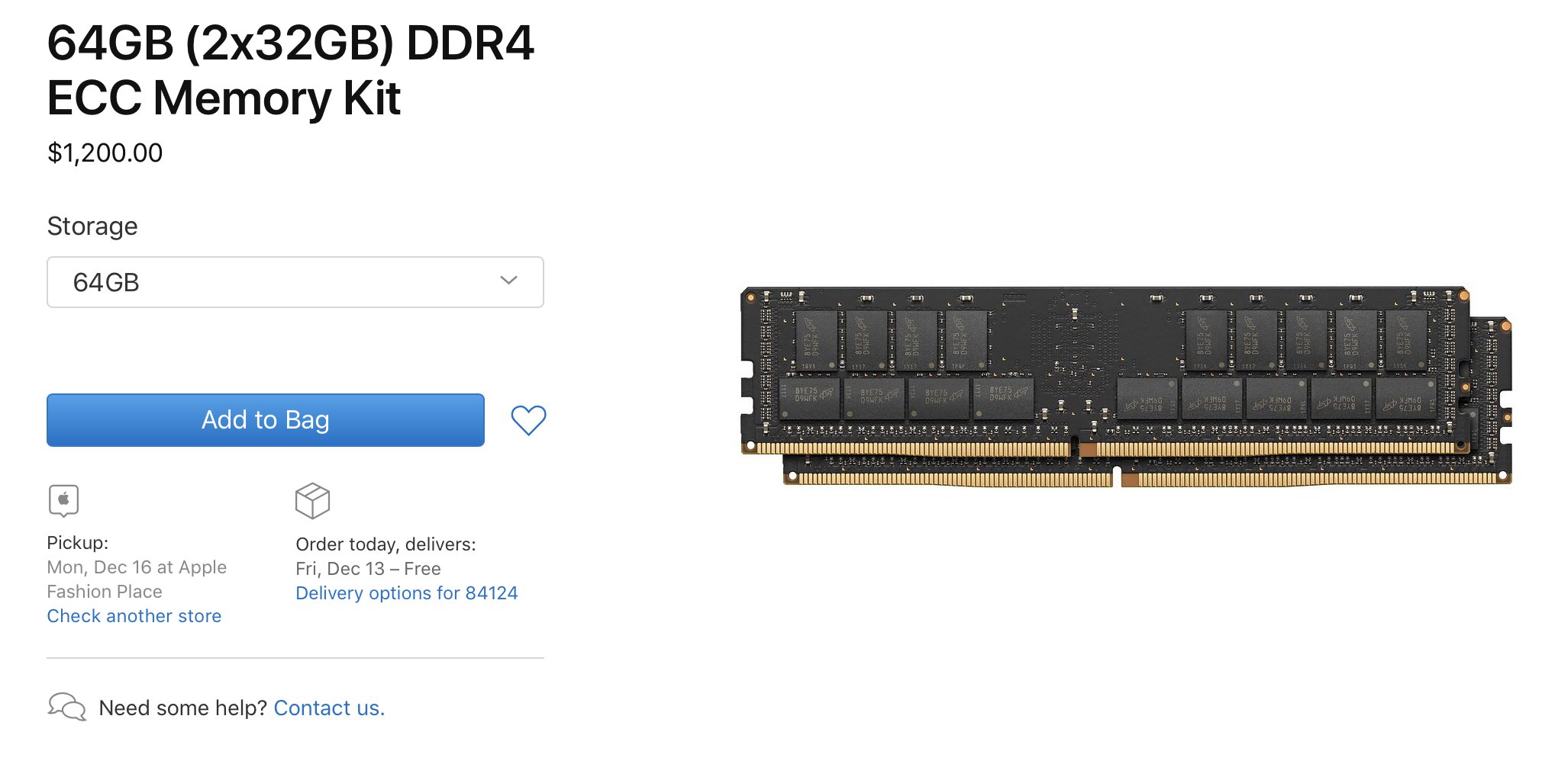 Если же посмотреть на стоимость непосредственно модулей оперативной памяти на сайте Apple, то, к примеру, за комплект объёмом 64 ГБ компания просит 1200 долларов.