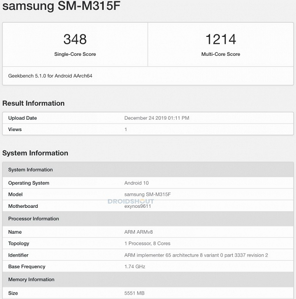 База бенчмарка Geekbench указывает на то, что Galaxy M31 сохранит платформу предшественника — SoC Exynos 9611. То есть, с одной стороны, к производительности вопросов не будет. С другой — в новом поколении хотелось бы чего-то большего.