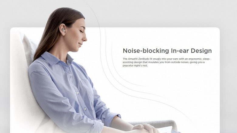 Модель Amazfit ZenBuds необычна тем, что нацелена вовсе не на прослушивание музыки, а на обеспечение хорошего сна. Huami утверждает, что Amazfit ZenBuds — это путешествие к идеальному сну. Форма корпуса с несъёмными «ушками» способствует лучшему удержанию в ухе. Также тут уделено внимание звукоизоляции, а специальные датчики будут отслеживать сон пользователя.