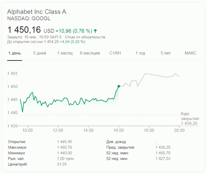 Акции гиганта интернет-поиска за последние три месяца выросли почти на 17%, тогда как индекс S&P 500 за тот же период вырос всего 11%. За 2019 год акции Alphabet выросли на 29%.