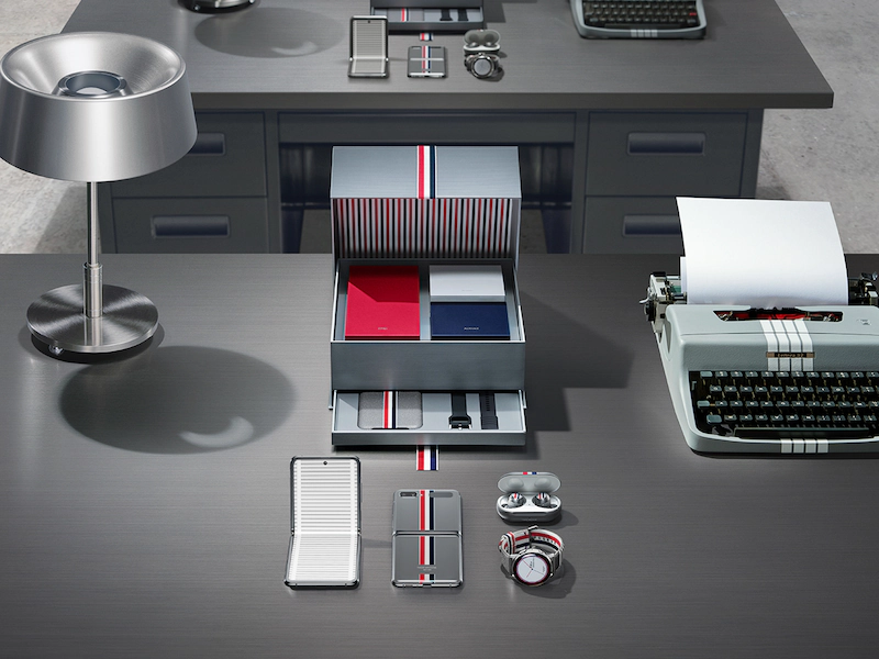 Ранее мы уже слышали о Samsung Galaxy Z Flip Thom Browne Edition, эта версия была создана в сотрудничестве с культовым нью-йоркским модным брендом. Издание отличается характерными фирменными цветами Thom Browne на серо-коричневой поверхности, а также логотипом Thom Browne New York на задней части корпуса. Также в комплект входят специальные версии беспроводных наушников Galaxy Buds + и умных часов Galaxy Watch Active2.