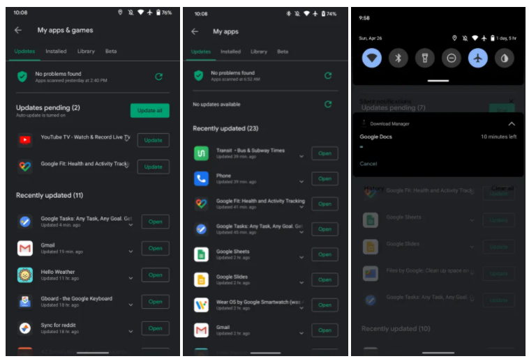 Зашедшие в минувшие выходные и утром понедельника в Google Play пользователи заметили странное — множество доступных обновлений для приложений. Большинство из них относятся к приложениям, разработанных самой Google, включая YouTube TV, Wear OS, Gmail, Google Docs, Sheets, Slides, Tasks Phone, Fit и Files.