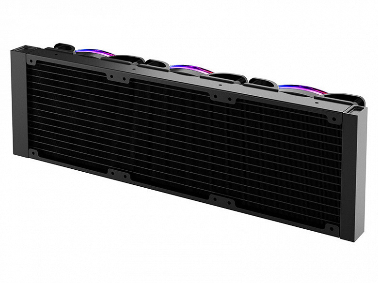 Радиаторы снабжены выравнивающим давление элементом и работают в паре с помпами, создающими высокоскоростной поток охлаждающей жидкости. На радиаторе установлены три 120-миллиметровых вентилятора. Вентиляторы и помпа украшены подсветкой RGB.