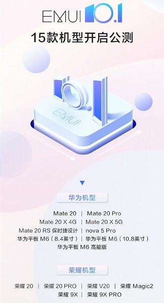 Компания Huawei объявила о том, что с сегодняшнего дня началось открытое бета-тестирование оболочки EMUI 10.1 (или Magic UI 3.1, если говорить о моделях Honor) для 13 моделей смартфонов двух этих брендов. Для того, чтобы установить обновление (пока оно доступно только в Китае), пользователи должны быть подписчиками программы бета-тестирования Huawei.