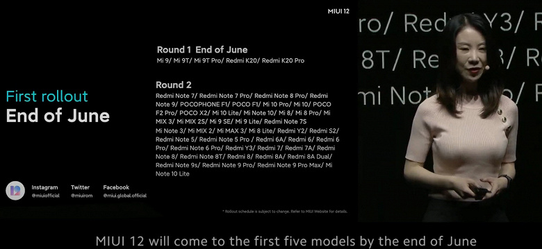 Первыми смартфонами, которые получат финальную версию MIUI 12, станут Xiaomi Mi 9, Xiaomi Mi 9T, Xiaomi Mi 9T Pro, Redmi K20 и Redmi K20 Pro. Они будут обновлены до финальной версии MIUI 12 уже в конце июня. То есть примерно так же, как и их китайские собратья.