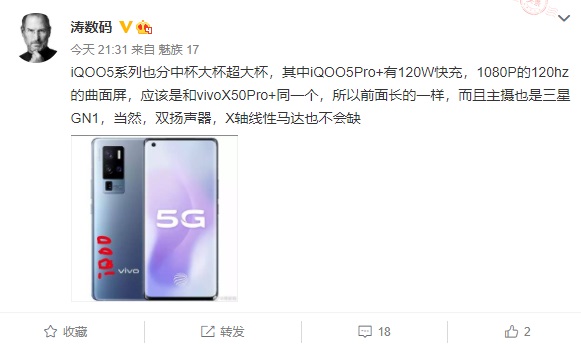 По данным инсайдера, она получит изогнутый экран с кадровой частотой 120 Гц и поддержку быстрой зарядки мощностью 120 Вт. Информатор этого не озвучивает, но можно не сомневаться, что однокристальной платформой IQOO 5 Pro выступит Snapdragon 865 – опыт предыдущих моделей указывает именно на это. Главным датчиком многомодульной камеры этой модели может стать Samsung GN1 разрешением 50 Мп.