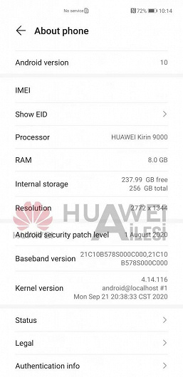 Как можно видеть, аппарат действительно будет основан на SoC Kirin 9000, у него действительно будет 8 ГБ ОЗУ и 256 ГБ флэш-памяти (это единственная версия для Европы), а разрешение экрана действительно составит непривычные 2772 х 1344 пикселя.