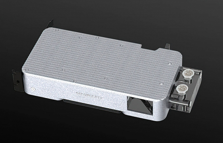 Основание водоблока изготовлено из меди и никелировано. Оно покрывает не только графический процессор, но и компоненты подсистемы питания. Крышка из прозрачного поастика служит рассеивателем адресуемой подсветки, совместимой с программным обеспечением сторонних производителей (ASUS AURA Sync, GIGABYTE RGB Fusion, MSI Mystic Light Sync, ASRock Polychrome, BIOSTAR VIVID LED DJ и Razer Chroma). Для 12-контактного разъема дополнительного питания предусмотрен вырез. Водоблок стоит 325 долларов.