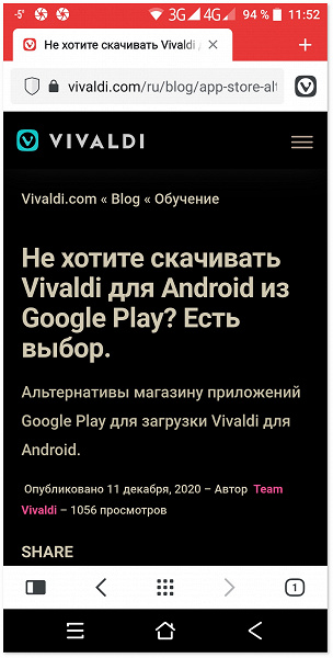 Команда набирающего популярность альтернативного браузера Vivaldi вслед за большим обновлением десктопной версии выпустила апдейт для Android.
