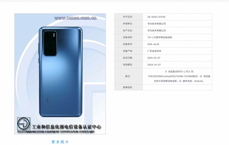 В базе данных китайского регулятора TENAA засветился новый смартфон Huawei… который как две капли воды похож на Huawei P40. Судя по всему, компания решила выпустить более доступную версию модели, которая, скорее всего, будет называться Huawei P40 4G – исходя из сертификационных документов, устройство не поддерживает 5G.
