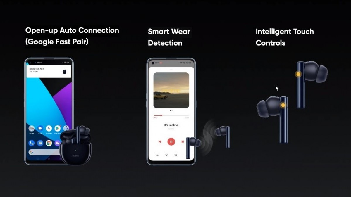 Система активного шумоподавления в Buds Air 2 дополнена технологией устранения посторонних звуков во время звонков, она называется Environmental Noise Cancellation (ENC). Также наушники получили систему сенсорного управления, функцию автоматического выключения при снятии, режим подключения к двум устройствам и так называемый Game Mode, в котором задержка при передаче звука снижается до 88 мс – это минимальный уровень среди всех беспроводных наушников Realme на данный момент и гораздо меньше, чем 120 мс у предшественника.