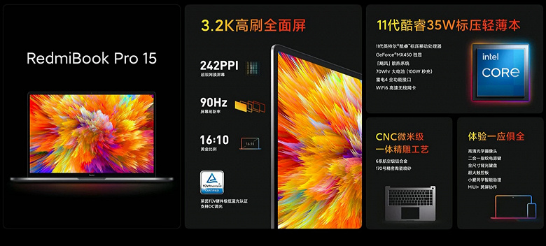 Берегись, MacBook Pro. Redmi представила RedmiBook Pro за 775 долларов с экраном 3,2К, большим аккумулятором, Thunderbolt 4 и быстрой зарядкой мощностью 100 Вт