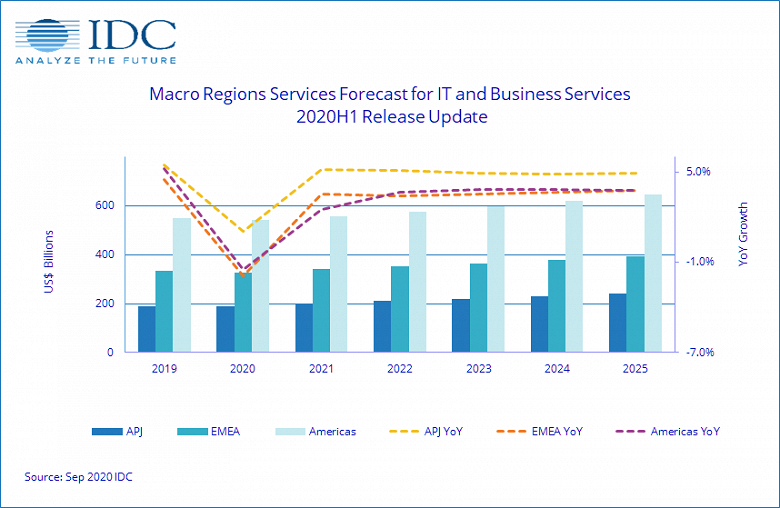 Специалисты IDC также учли недавно опубликованные экономические прогнозы, указывающие на более быстрое и устойчивое восстановление. Ожидается, что восстановление экономики развитых рынков приведет к увеличению, в том числе, расходов на сервисы.