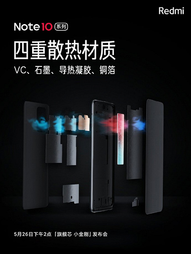 На этот раз компания раскрыла подробности о системе охлаждения Redmi Note 10 Ultra: ее площадь составляет 16370 мм2, а центральный элемент – это испарительная камера. В Redmi говорят, что в Note 10 Ultra впервые применяются компоненты охлаждения флагманского уровня.