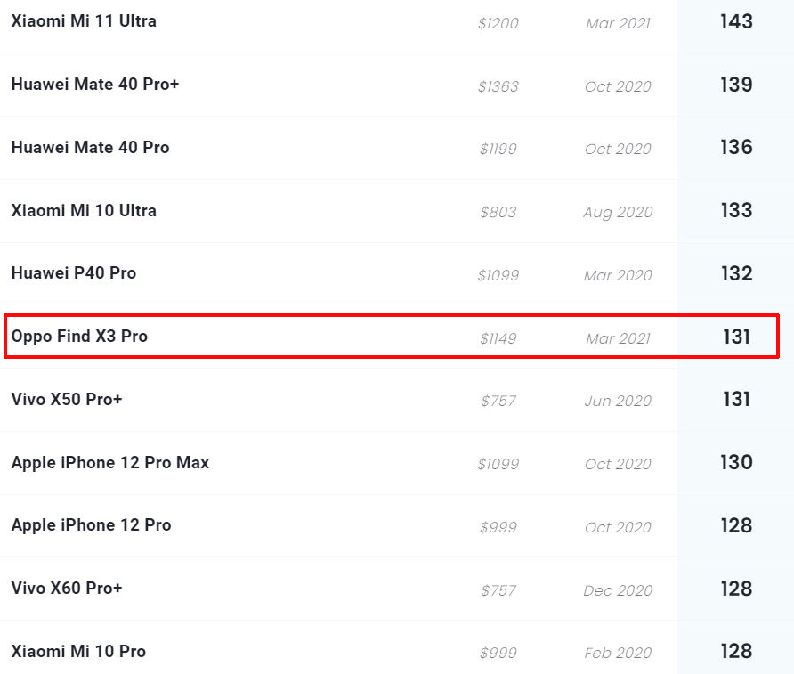 Специалисты DxOMark протестировали основную камеру смартфона Oppo Find X3 Pro и пришли к выводу, что она отлично делает свою работу во всем диапазоне фокусных расстояний. Суммарный балл за все тесты – 131, что обеспечило смартфону шестое место общего рейтинга. Для сравнения, у Apple 12 Pro Max – 130 баллов и восьмое место, а у Huawei P40 Pro – 132 балла и пятое место.