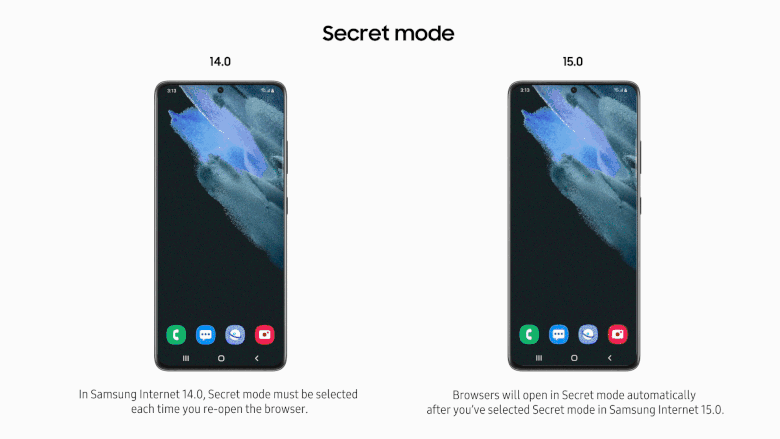 Также в Samsung Internet 15.0 появилась возможность удалять информацию, которую браузер сохранил на устройстве, и дает точное представление об этих данных. Кроме того, после активации «секретного» режима браузер остается в нем по умолчанию и пользователю не требуется включать функцию каждый раз.