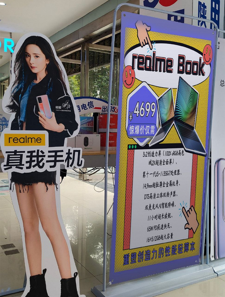 В китайский розничных магазинах появились рекламные баннеры, которые перечисляют характеристики и указывают характеристики нового ноутбука Realme Book. Устройство должно предлагаться по цене около 725 долларов.