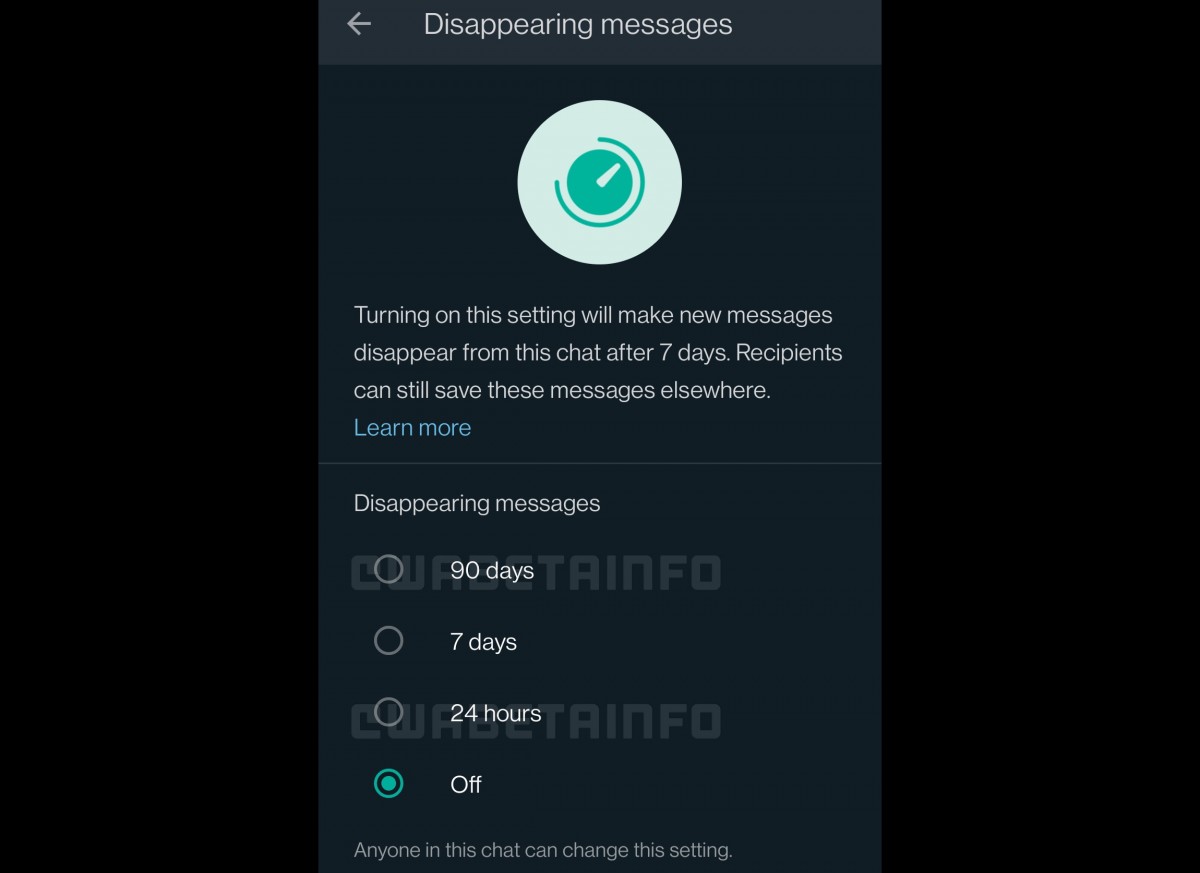 После выхода очередного обновления у пользователей будет больше вариантов: Off (сообщения не исчезают), 24 часа, 7 дней или 90 дней. Это наглядно отображено на следующем скриншоте из бета-версии WhatsApp.