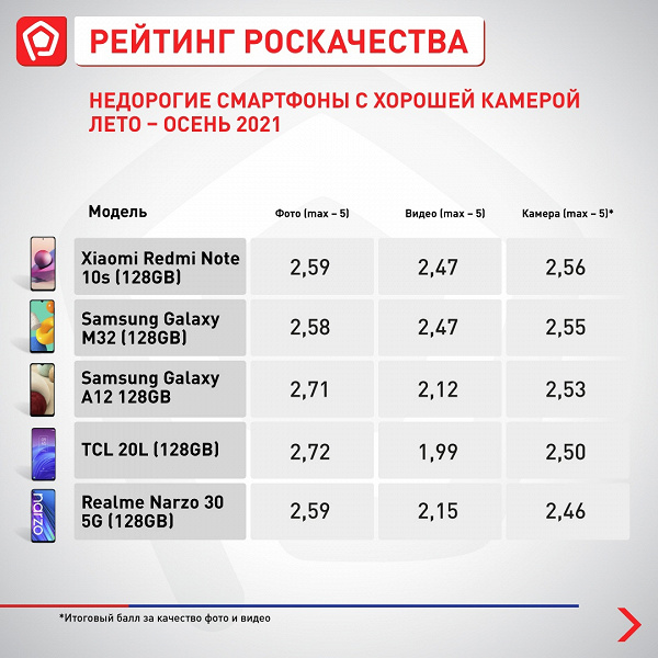 Первое место среди смартфонов до 20 тысяч рублей занял Xiaomi Redmi Note 10s. Эксперты отметили, что многие бюджетные смартфоны жертвуют показателями камеры ради снижения цены, однако модель от китайского бренда продемонстрировала лучшие результаты по съемке фото и видео среди бюджетных...