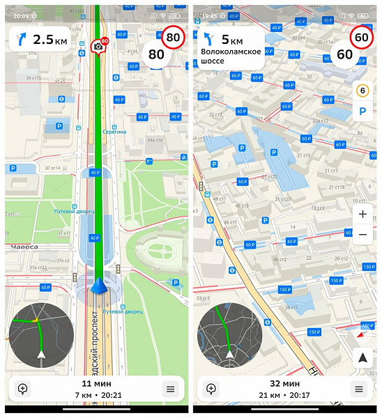 Появился «градусник» с прогрессом маршрута и отображением пробок в пути. Новая особенность навигатора — мини-карта с обзором всего маршрута, который можно включить одним касанием. По нажатию на мини-карту можно оценить всю поездку и пробки на дорогах, скорректировать маршрут.